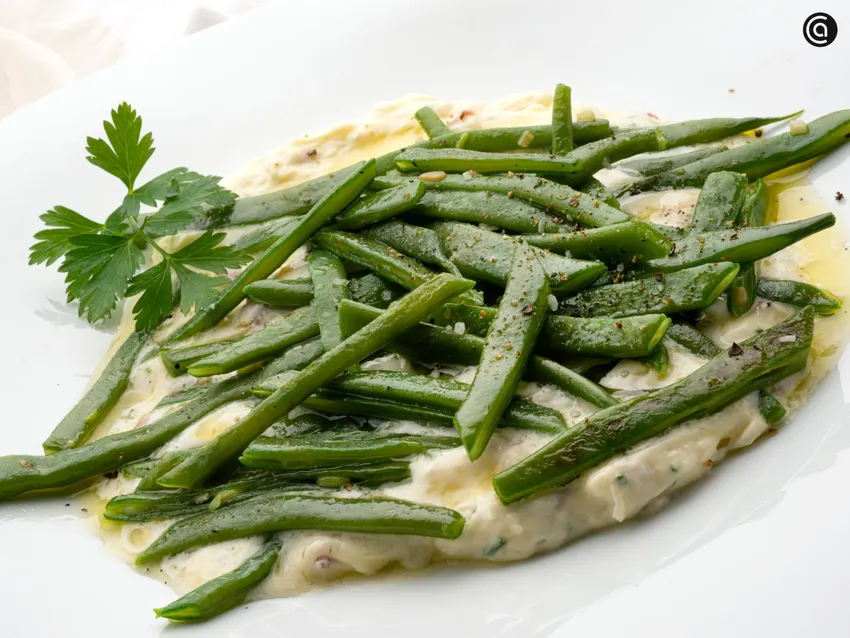 La receta consiste en cocer las vainas o judías verdes y luego saltearlas. Después, fundir los tres quesos (camembert, gorgonzola y mascarpone), mezclarlos con cebollino y trozos de jamón... y listo.