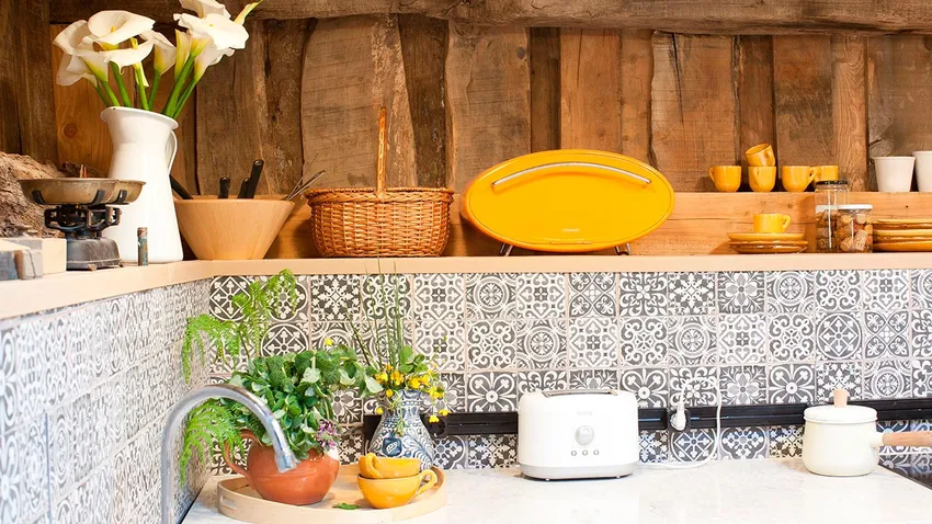 ¡Y listo! Ya tenemos nuestras baldosas hidráulicas colocadas y una cocina revestida moderna y colorida.