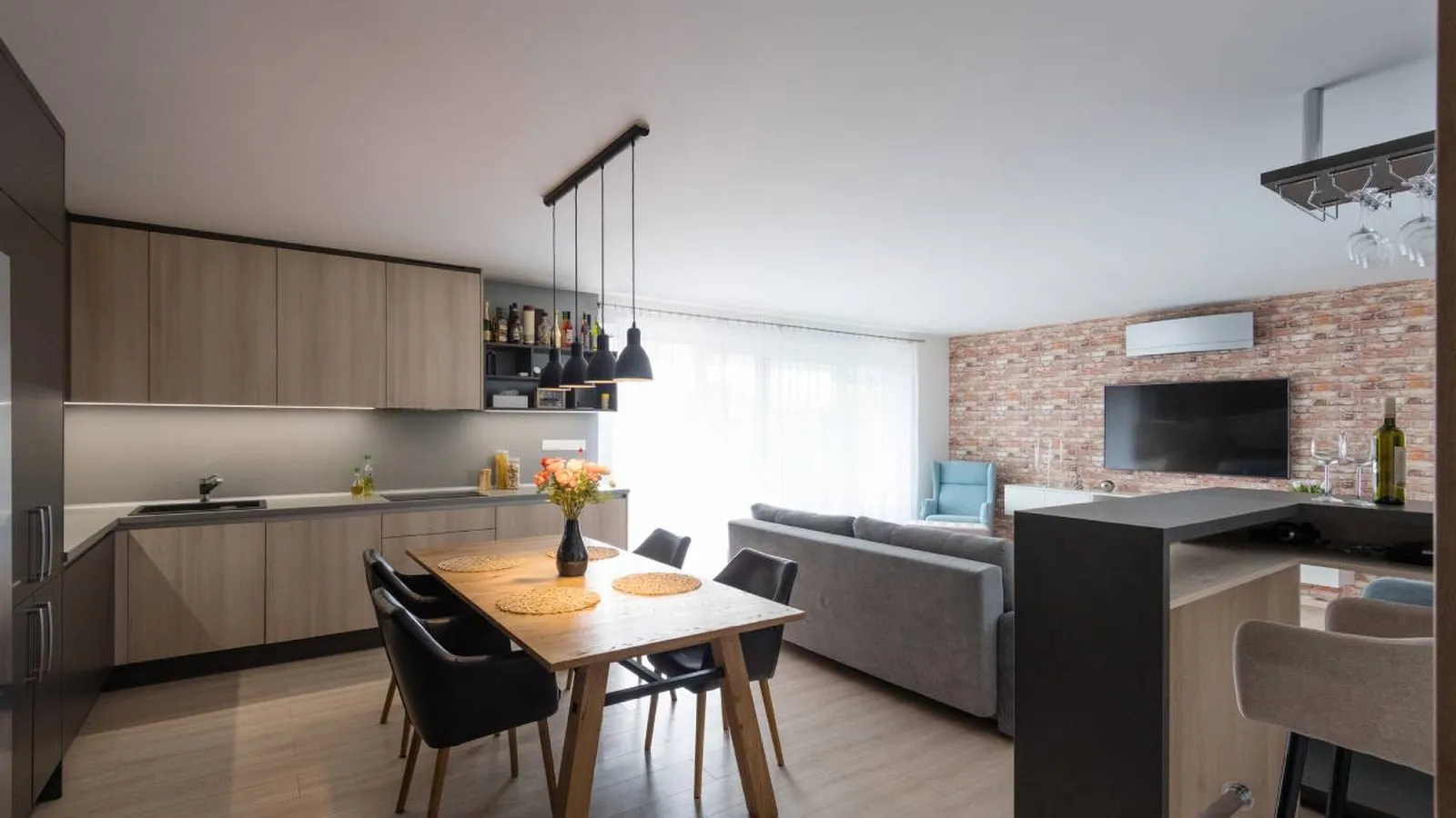 Las mesas redondas (que también puedes encontrarlas extensibles) quedan muy bien a modo de elemento divisorio entre cocina y salón-comedor para las casas con distribuciones más modernas.