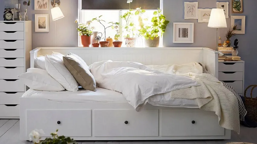 Todo lo que quieras tener a mano y oculto.Es una de las camas nido de Ikea más vendida que cuenta con un diseño elegante que nunca pasa de moda y al ser de color blanco dota de luminosidad a la estancia.