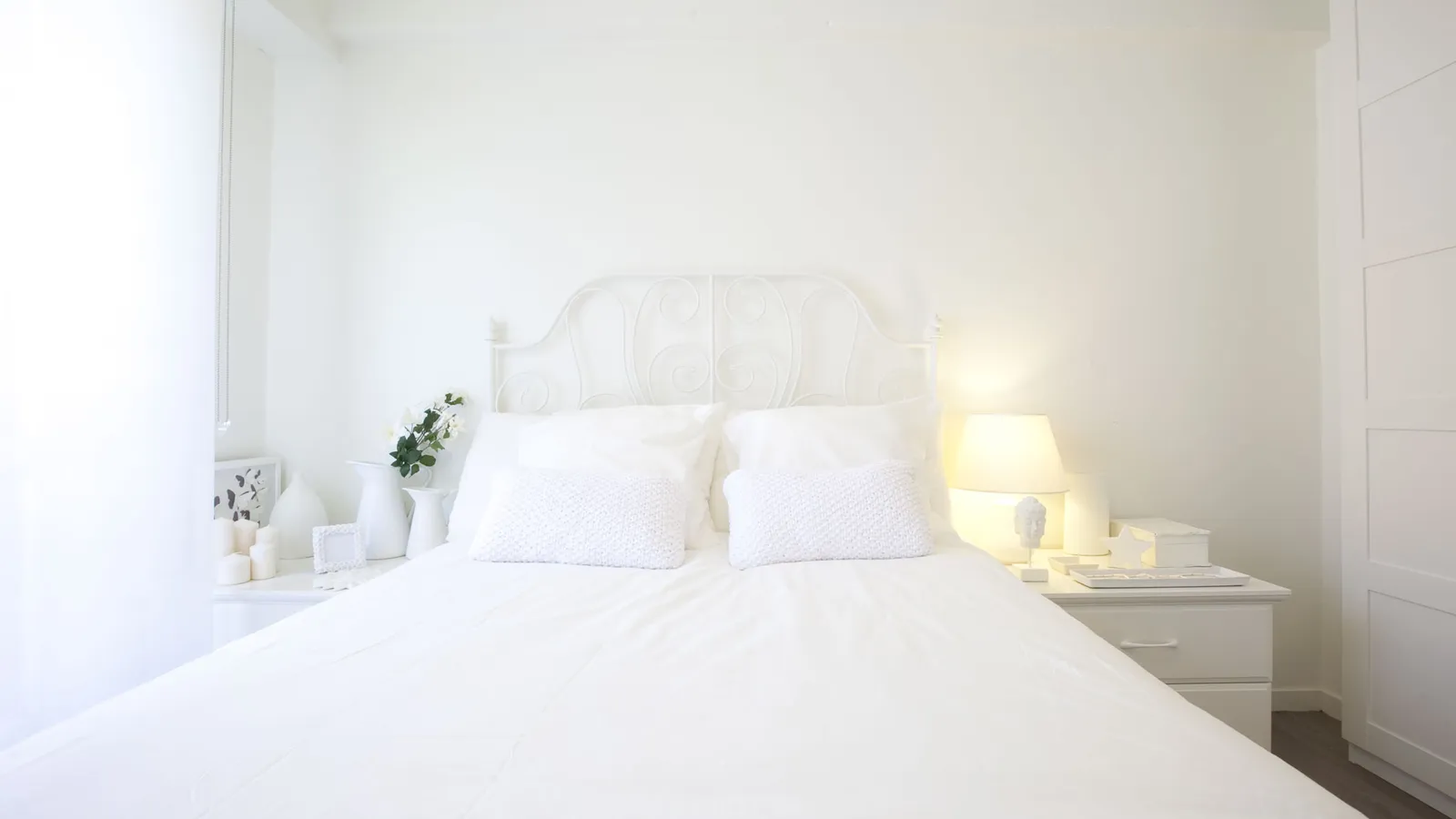 Utilizando el color blanco en paredes, muebles y complementos, vamos a lograr decorar un dormitorio luminoso y romántico.