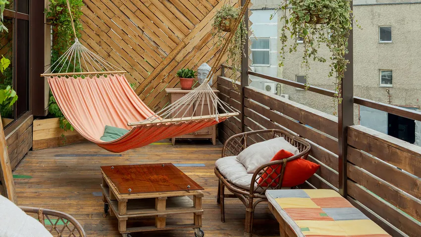 Si tu terraza es bastante pequeña lo que hay que hacer es aprovechar el espacio a tope. Y sí, para ello, los palets también son geniales. Una buena manera de ganar espacio y muebles a la vez es colocando los palets en forma de rinconera, pegados a las paredes y siguiendo la forma de la terraza.