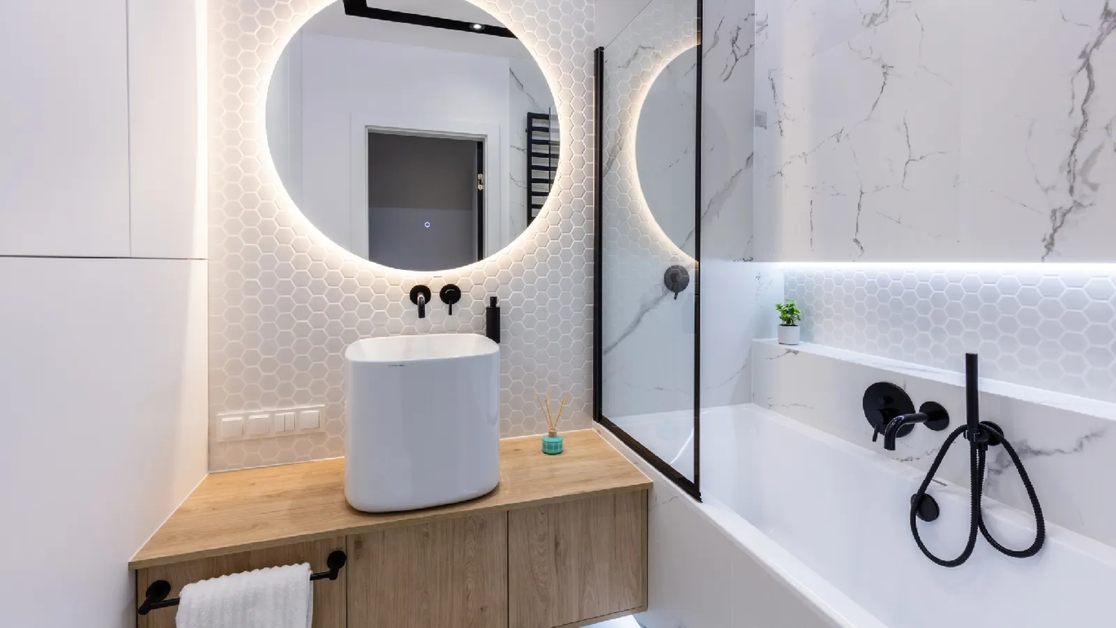 - También espejos con iluminación propia que agrega profundidad y dimensión.