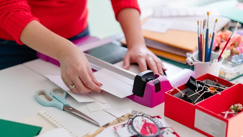 Utilizar las herramientas adecuadas es clave para conseguir un resultado más profesional. Asegúrate de que tus tijeras cortan bien para que la cartulina no quede irregular o pelada, y comprueba que la regla no está manchada de tinta para evitar que tu nueva creación se manche.