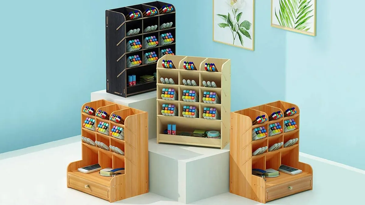 Los organizadores de escritorio en forma de armarios de madera en miniatura son la opción perfecta para no volver a tener el material artístico repartido por todos los lados.