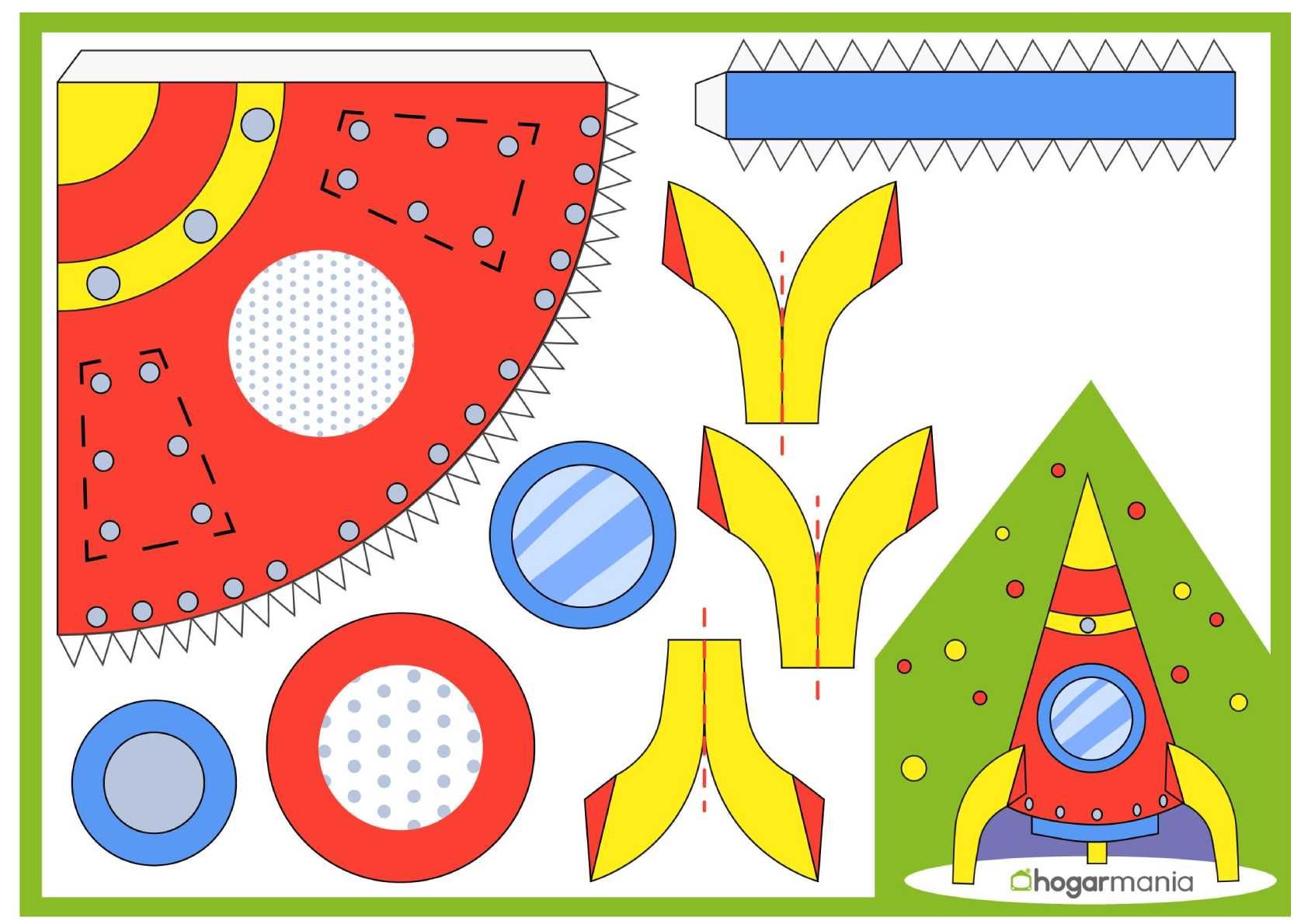 Crea un cohete de papel paso a paso. Descarga la plantilla, decóralo a tu estilo y disfruta esta manualidad creativa.