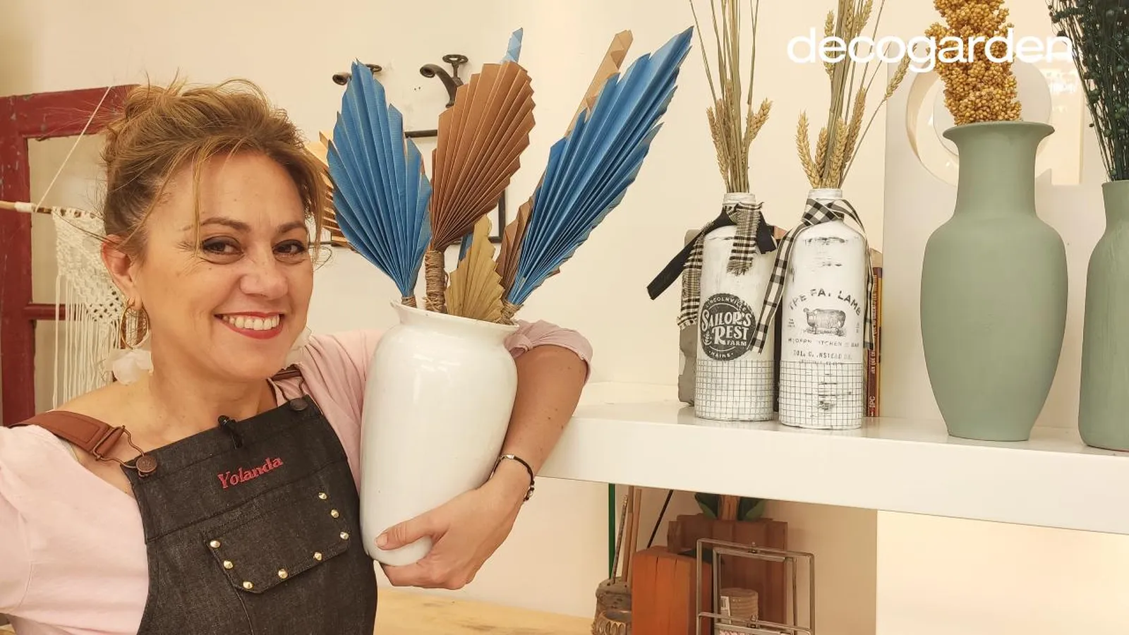 Además, elegir unos jarrones bonitos también es muy importante. Las flores de papel que os hemos enseñado a elaborar en azul y el color natural del papel estraza quedan genial con flores secas en tonos amarillos, rosas claros... Y también con las botellas de cristal de estilo farm que os enseñamos a hacer.