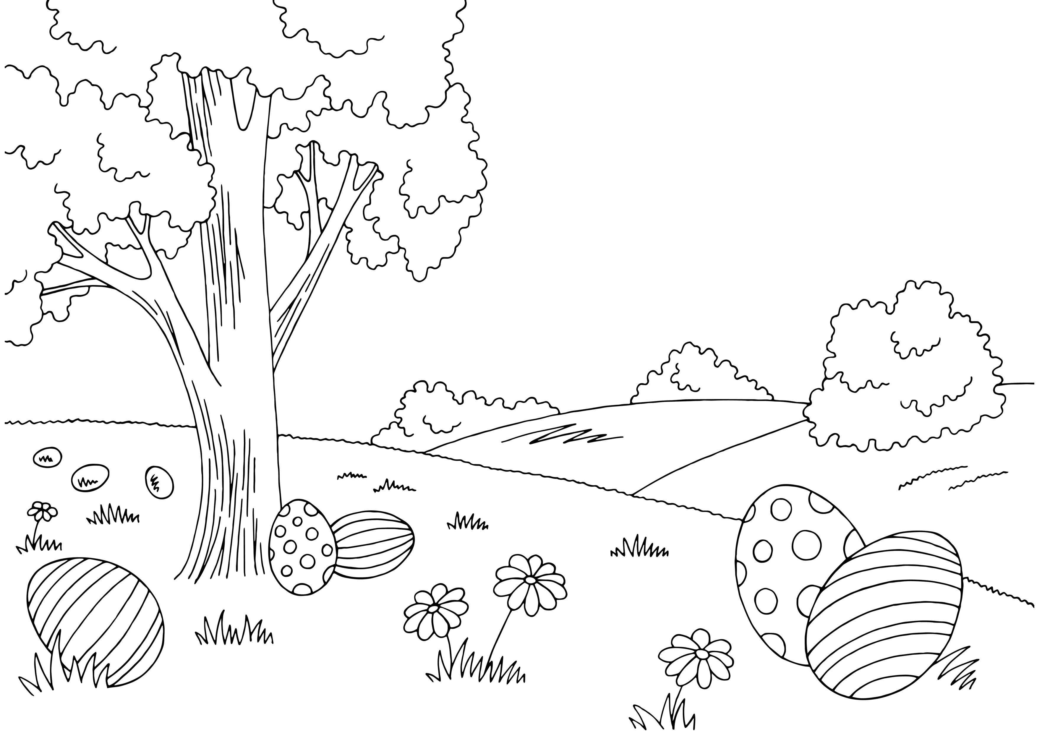 Descargar: Dibujo de huevos de Pascua en el bosque
