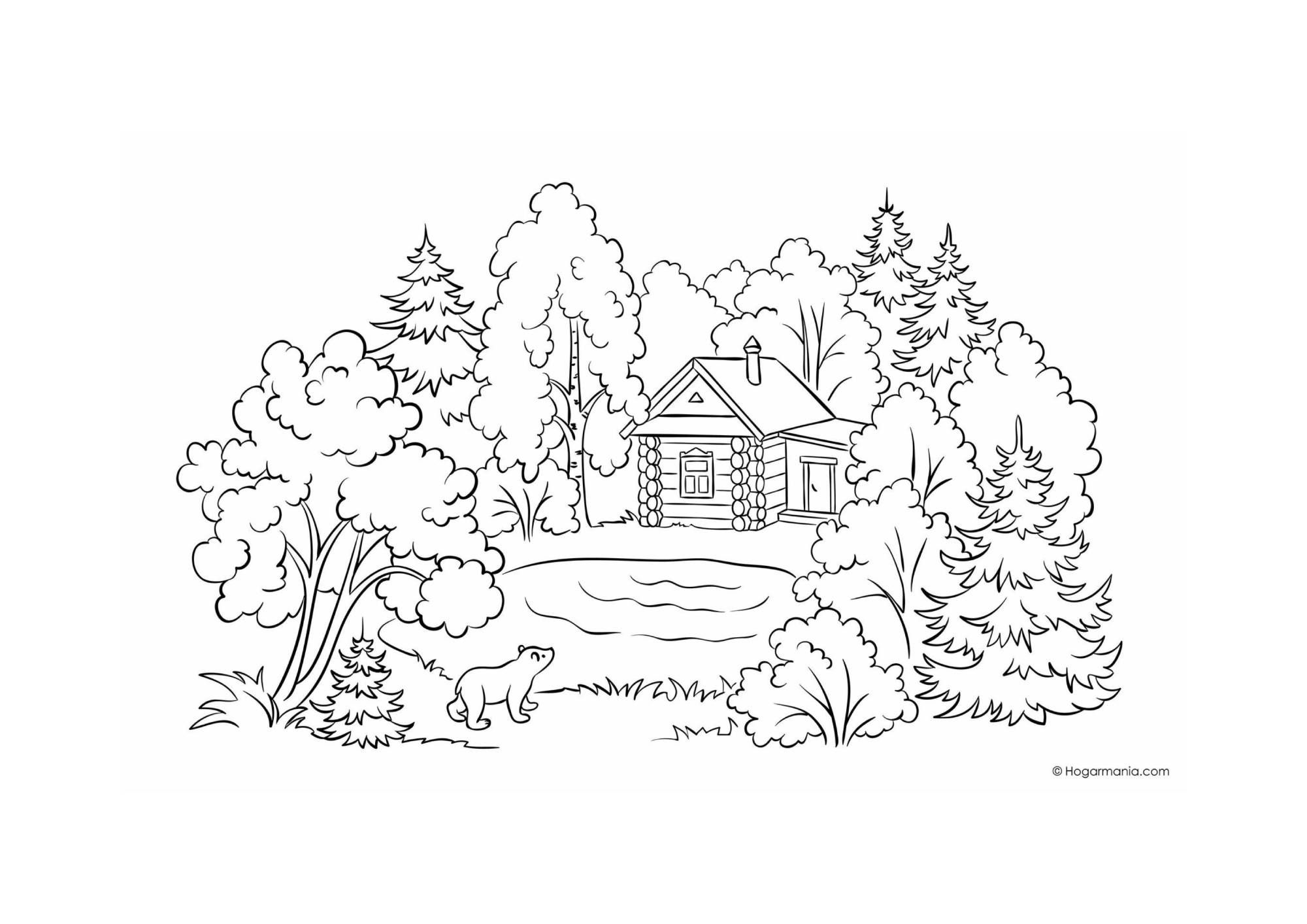 Descargar dibujo: Cabaña con lago en otoño (JPG)