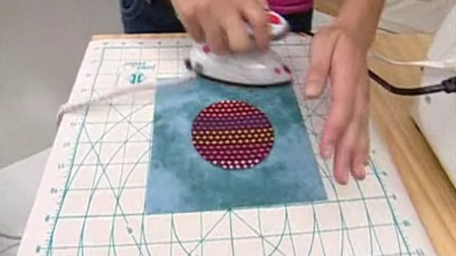 - Coger otra tela y recortar un cuadrado de 16,5 cm. Colocar el círculo en el medio del cuadrado, planchar y coser con hilo invisible.