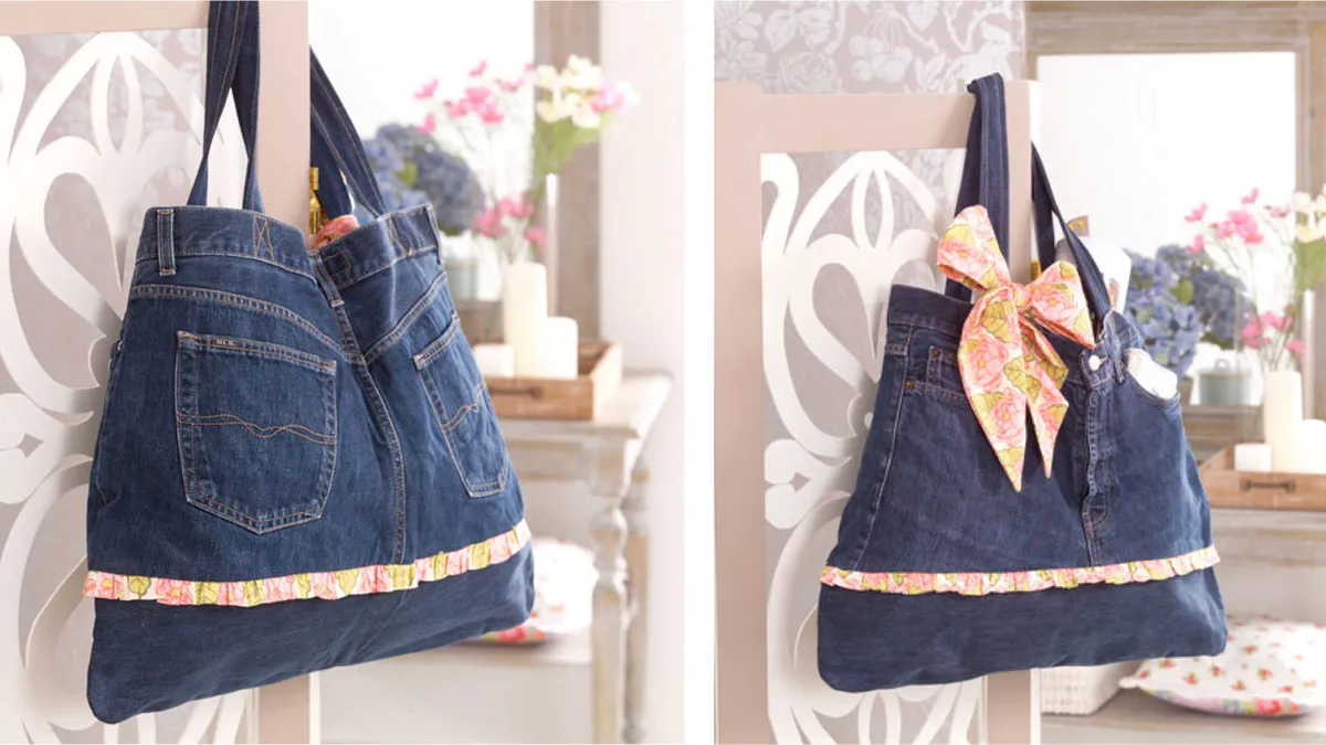 ¿Tienes un pantalón vaquero que ya no utilizas? ¡No lo tires! Puedes crear con él complementos vaqueros como un bonito bolso y adornarlo con un volante y lazada de flores. Te damos los materiales que necesitas para crear esta sencilla y divertida manualidad de costura.... ¡En tan sólo 8 pasos!