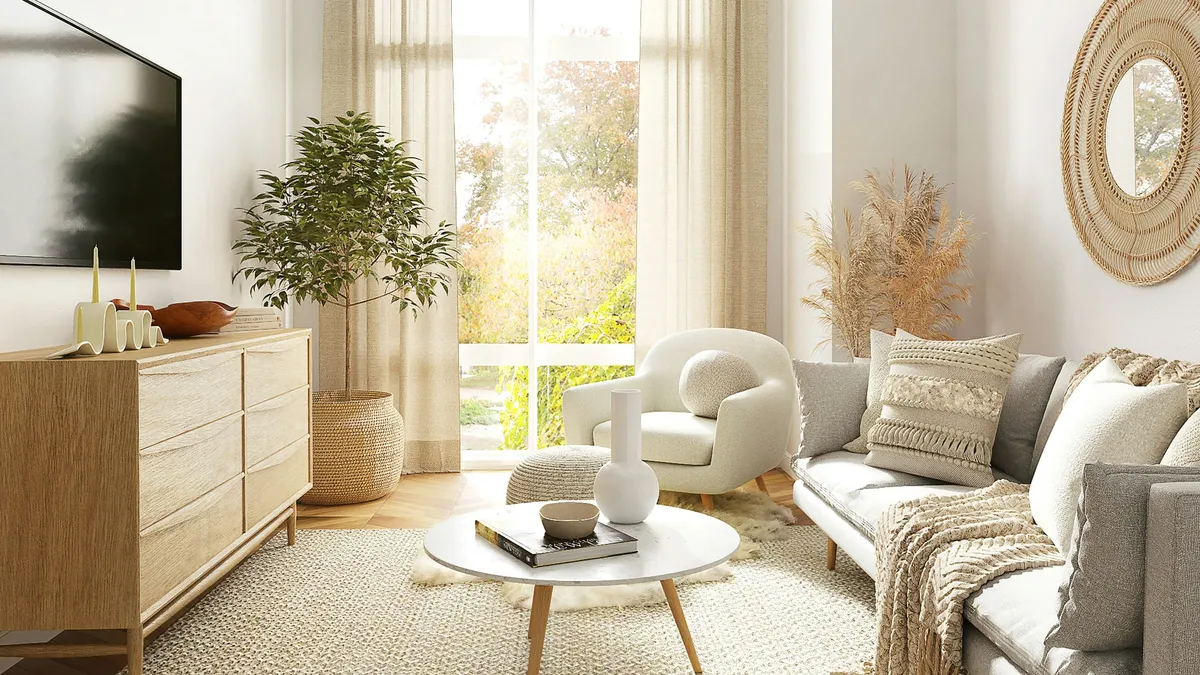 Mantén las ventanas y fuentes de luz natural despejadas. Evita obstaculizarlas con muebles altos o elementos decorativos voluminosos para que la luz fluya libremente por todo el espacio.