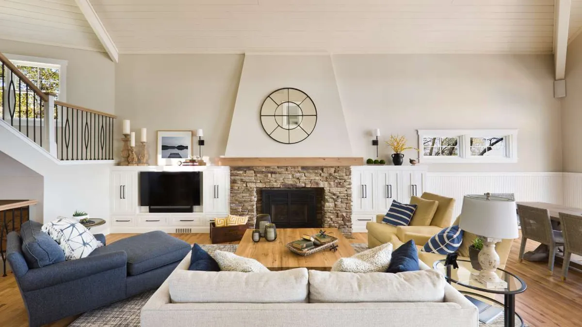 A continuación, te vamos a enseñar unas cuantas decoraciones de salones con chimeneas rústicas de piedra y ladrillo de estilo moderno, ¡pero muy bonitas y acogedoras!
