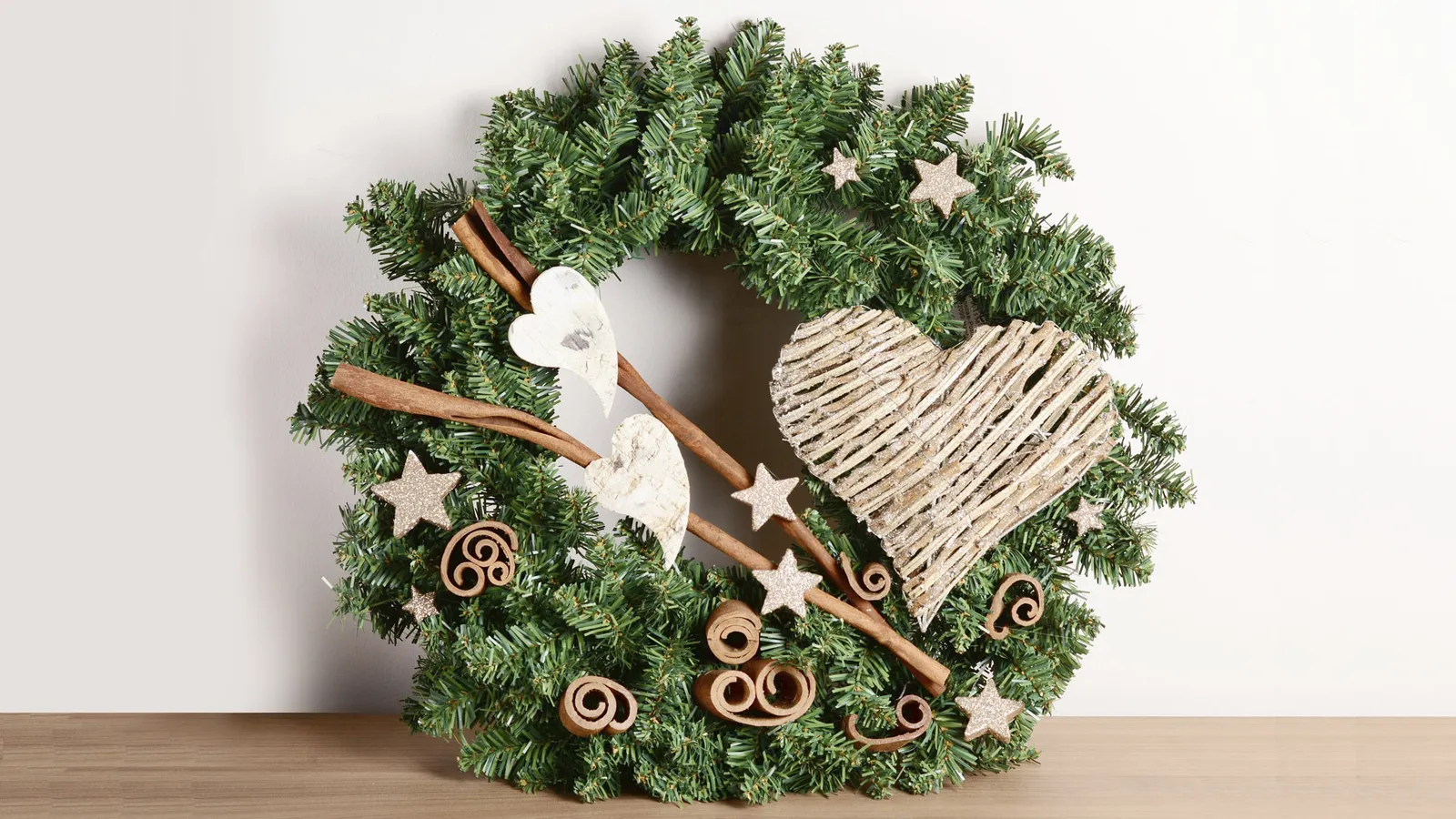 Son muchas las coronas que se pueden hacer en Navidad. En esta ocasión, os mostramos un ejemplo sobre una corona navideña con ramas y adornos rústicos.