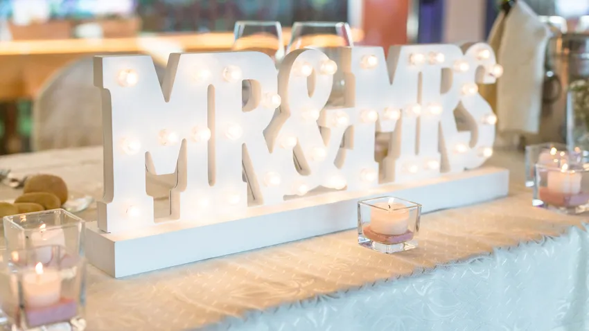Si la boda se celebra en el exterior, las letras con luces suelen ser perfectas para crear un ambiente más romántico. En este caso se recomienda que las letras sean de madera u otro material más resistente.