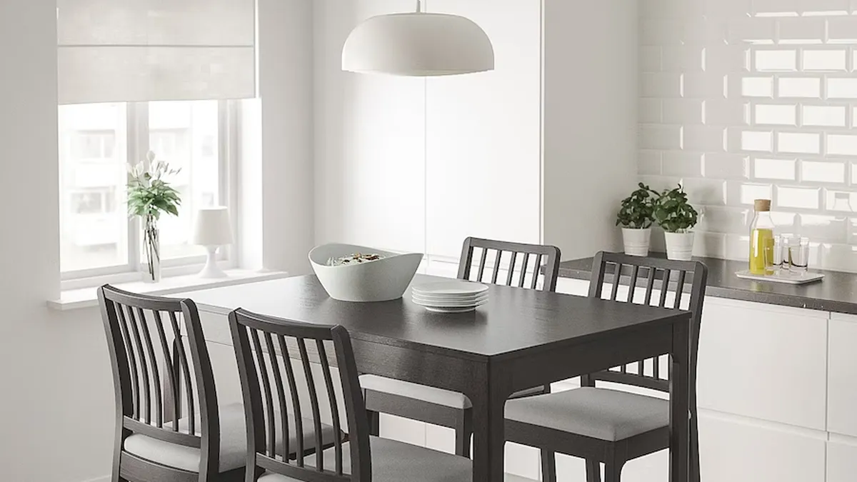 Otra opción, también de Ikea, es la mesa alta de cocina de Ekedalen. Esta mesa es de color marrón oscuro, una tonalidad muy original y fácil de combinar con el resto de elementos decorativos.