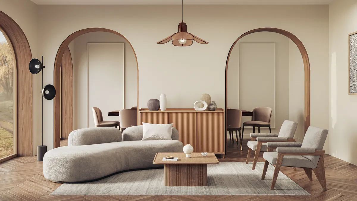 Cómo integrar muebles curvilíneos y maderas oscuras sin parecer anticuado