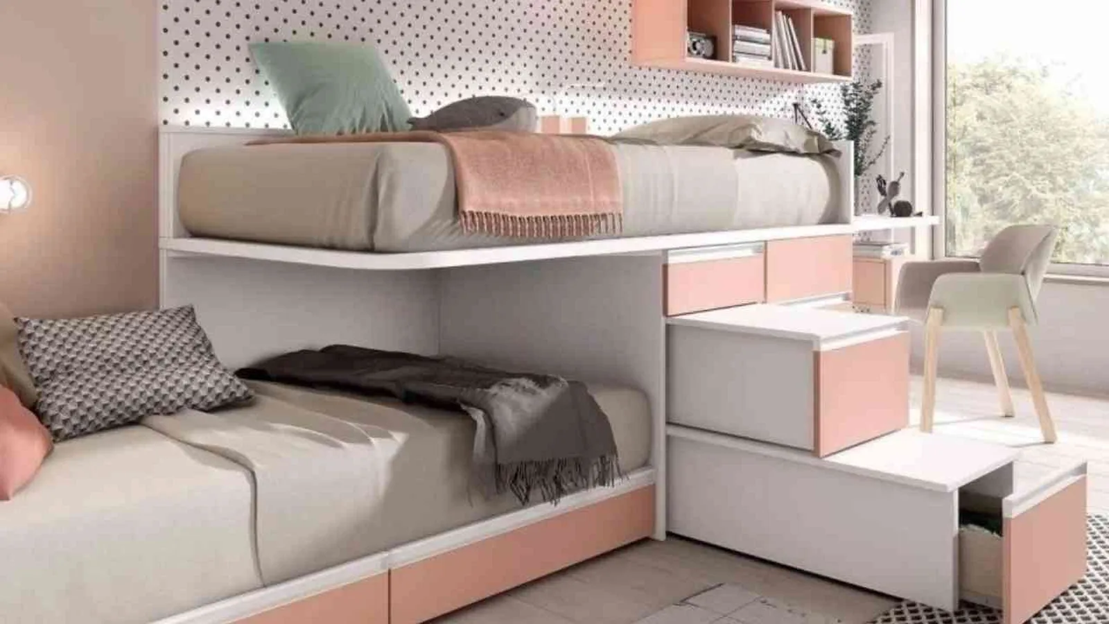Son adecuadas para habitaciones infantiles dobles de espacio reducido, ya que se pueden plegar durante el día, dejando espacio libre que puede ser utilizado para otras actividades durante el día.