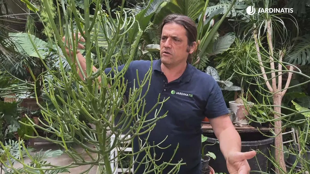 Existen distintas variedades de planta lápiz pero todas ellas son euphorbias. Iñigo nos muestra tres diferentes: