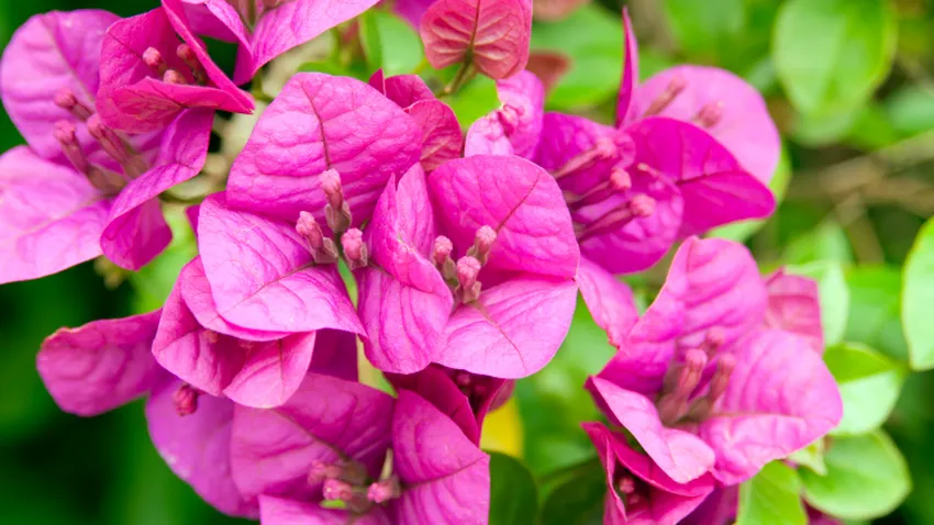 A diferencia de las buganvillas trepadoras, no pierden tantas hojas en invierno y podemos realizar la poda de formación todo el año, a excepción de agosto o en casos de calor excesivo.