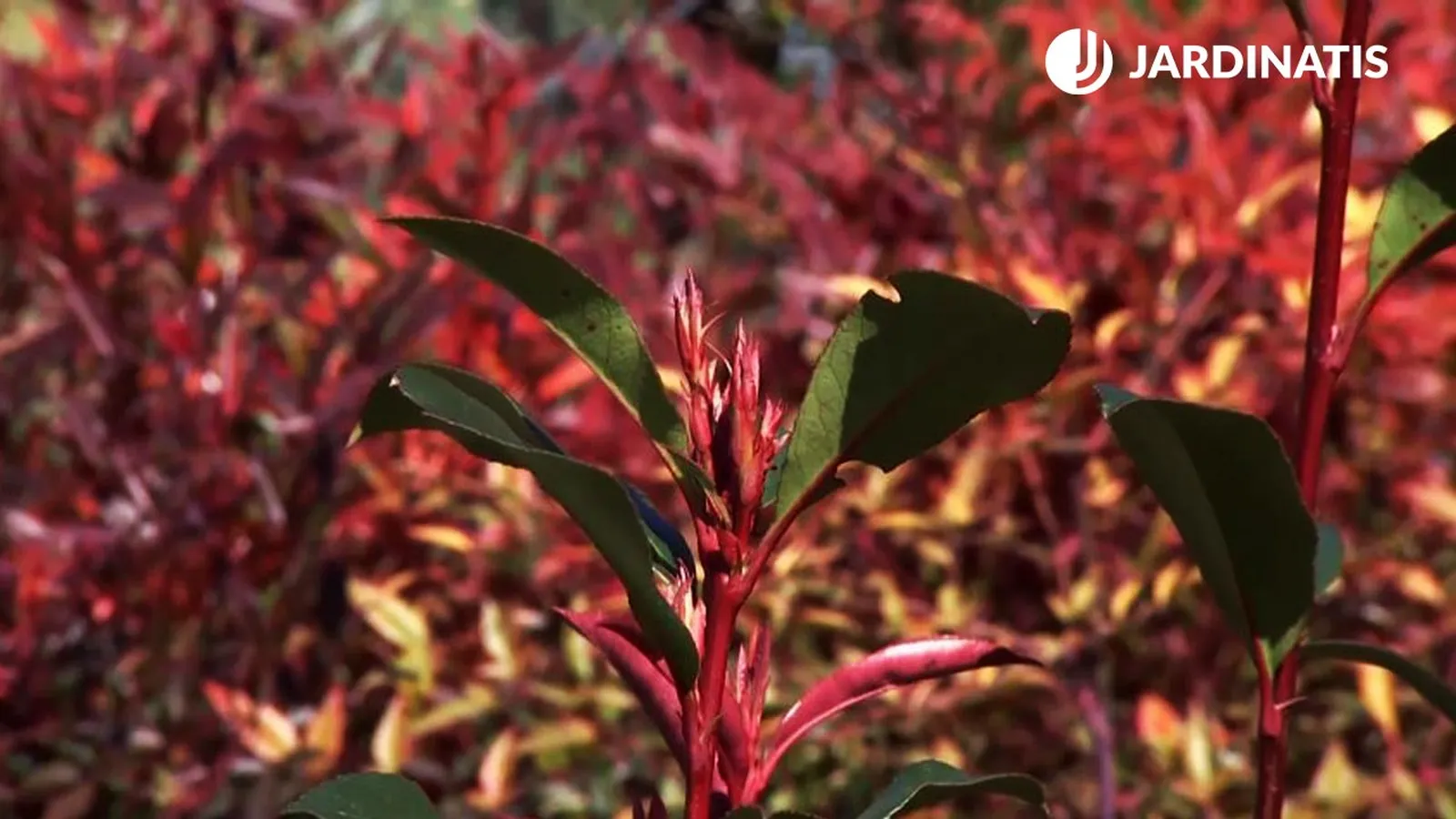 La photinia fraserii "red robin" y "little red robin" dos variedades de arbustos que se caracterizan por sus hojas de tonos granates.