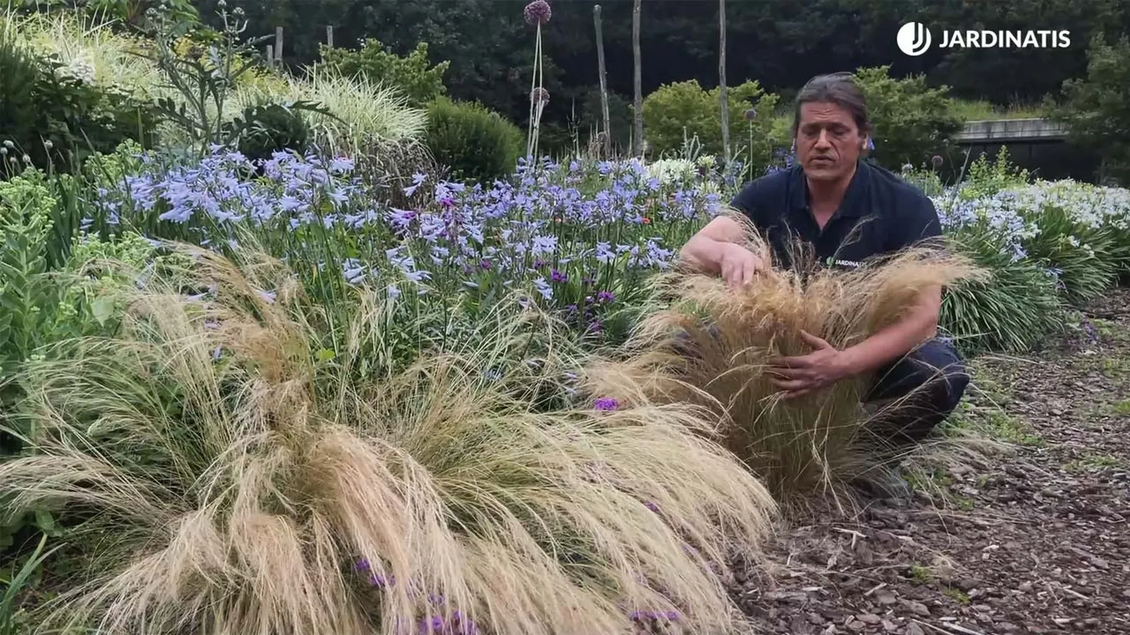 Iñigo ya nos mostrado lo buena combinación que es la Gramínea Stipa Tenuissima "Nasella" junto a las flores de verbena rígida. ¡El contraste del morado y el pajizo no puede ser más bonito!