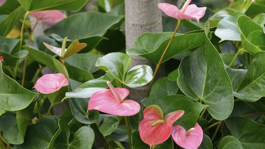 Evocadoras de los extravagantes sombreros del carnaval de Nueva Orleans, las decorativas flores del flamenco florecen desde la primavera hasta el final del verano. Asomándose por entre las hojas arponadas, sus flores son en realidad el espádice que emerge de la cerosa espata. Las espatas pueden ser de muchos colores: blanco, amarillo, verde, rosa, naranja y rojo.