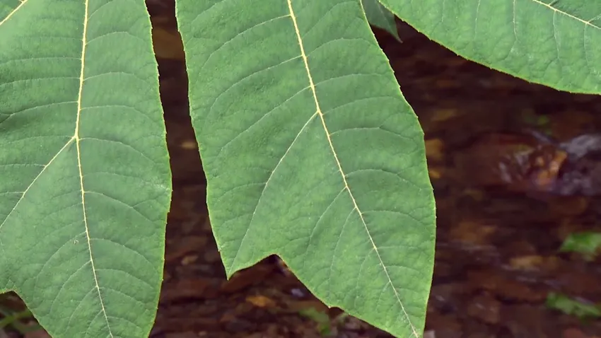 Se trata de una planta vivaz que desaparece en invierno pero que, llegada la primavera, reaparece con unas hojas gigantes que durarán hasta el otoño. Su hoja es prácticamente circular. Tiene una floración bastante insignificante.
