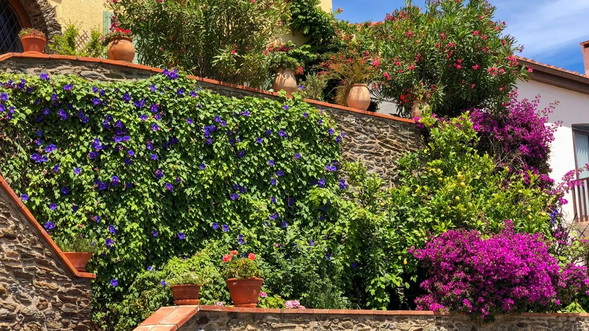 Existe una amplia variedad de plantas trepadoras que aportan interés visual a fachadas y muros.