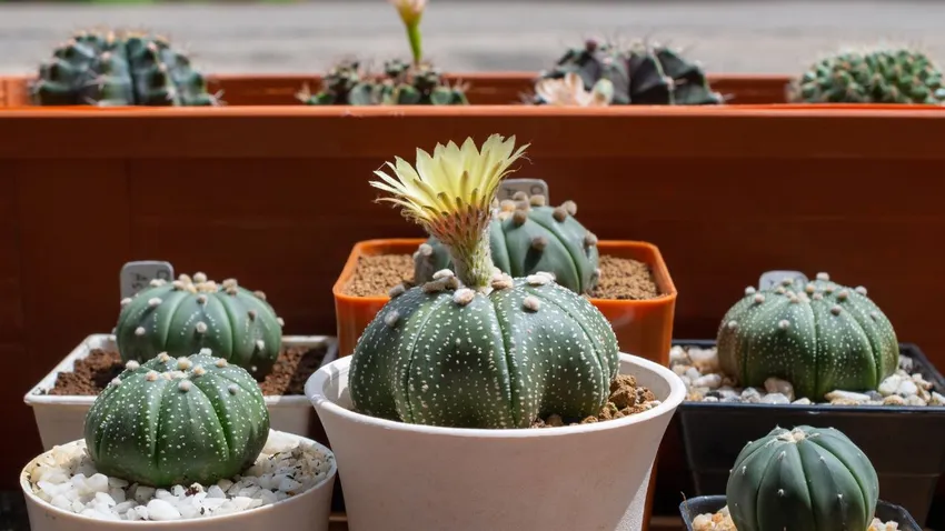 El Astrophytum myriostigma o cactus Astrofito es una planta originaria de México. Tiene su tallo esférico y achatado recubierto por una serie de pelitos blancos
