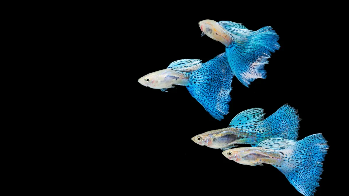 El pez Guppy (Poecilia reticulata), un pez de origen sudamericano y de América central, de pequeño tamaño con unas aletas de colores vivos y variados.