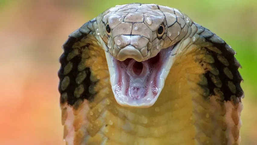 En National Geographic explican que "su veneno no es el más potente entre la serpientes venenosas, pero la cantidad de neurotoxina que puede inyectar en un solo mordisco, más de 22 mililitros, es suficiente para matar a 20 personas, o incluso un elefante. El veneno de la cobra real afecta a la parte del cerebro que controla la respiración, provocando un paro respiratorio y un fallo cardíaco".