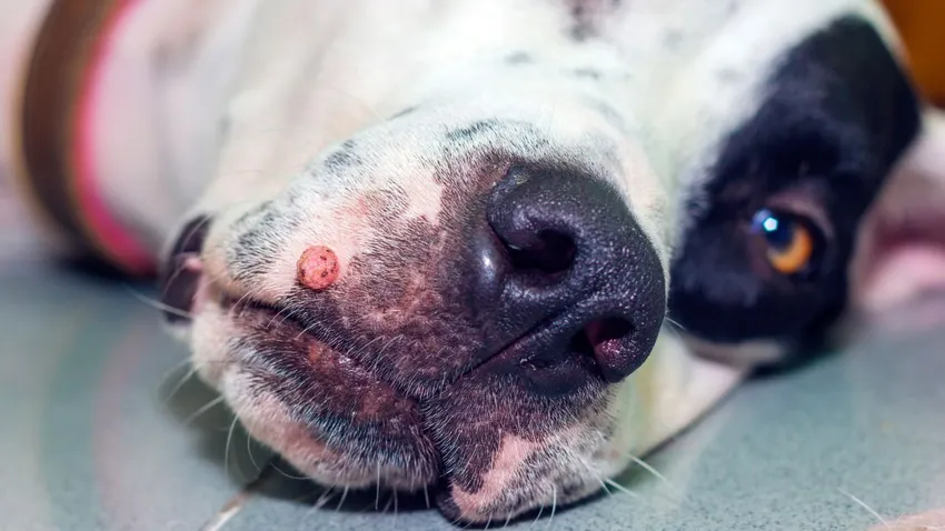 Verrugas causadas por un carcinoma de células escamosas en perros (CCE)